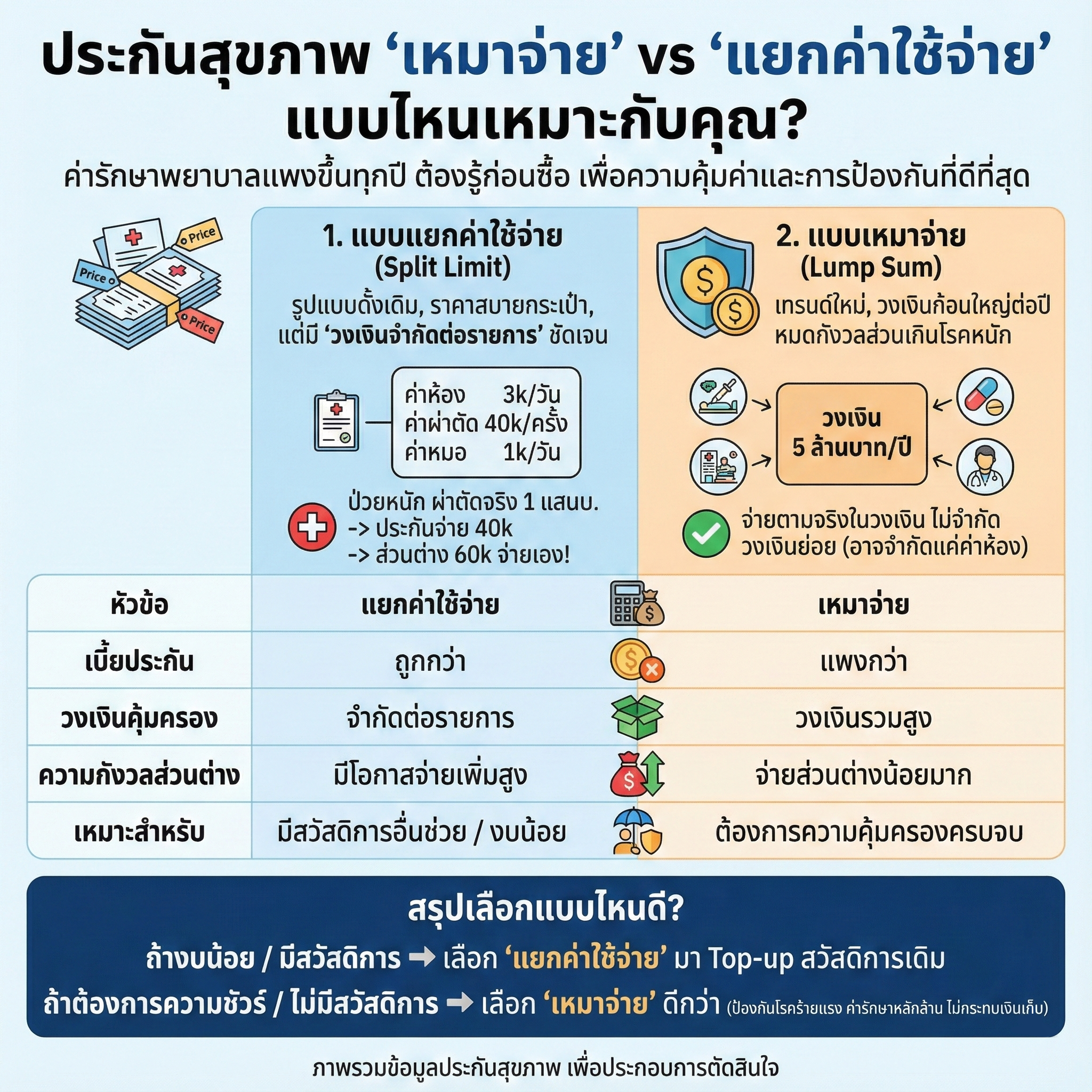 ประกันสุขภาพ เหมาจ่าย vs แยกค่าใช้จ่าย